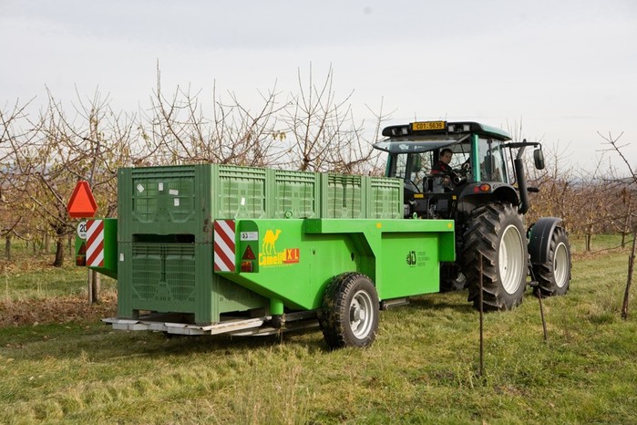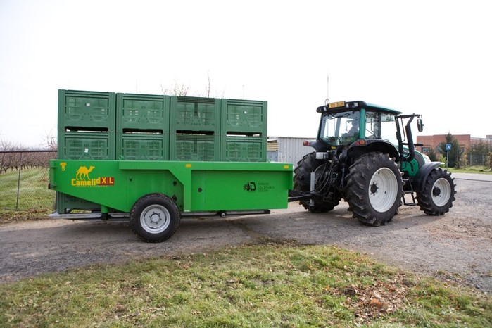 Der anschließbare Containerträger ist für den Transport von verschiedenen Arten von Material mit speziellen Containern vorgesehen. Die angebotenen Containertypen dienen zum Transport und zur Lagerung von Paletten, Kisten, Meter- und Schüttholz, Wasser und Schüttgut. Weitere Containervarianten werden kontinuierlich nach Kundenwünschen entwickelt. Der Containerträger ist für den Einsatz mit einem Traktor mit externer Hydraulikanlage bestimmt. Bei der Ladung des Containers werden die Schienen des Containerträgers durch eine Rückbewegung des Containerträgers unter den Container geschoben. Bei der Entladung wird der Container auf den Boden gestellt und der Containerträger fährt frei vorwärts. Vor der Fahrt wird der Containerträger in die (obere) Transportstellung gebracht.