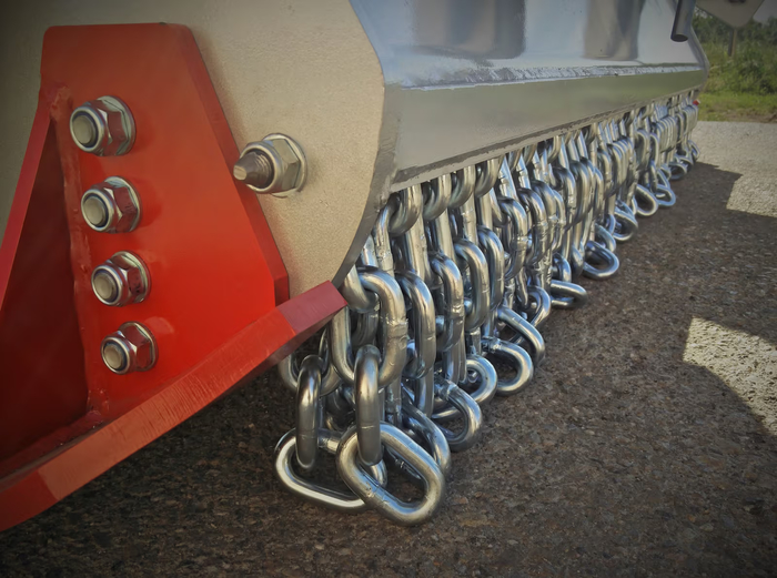 Dostatečná ochrana pro zajištění bezpečnosti obsluhy. Snadná údržba. Volnoběžka je součástí převodovky. Ozubené řemeny SPBX. Hydraulické zadní dveře. Pevná kladiva s vidiowolframovými hroty. Nastavení hloubky a smyky vyrobené z oceli odolné proti opotřebení. Kategorie uchycení III.