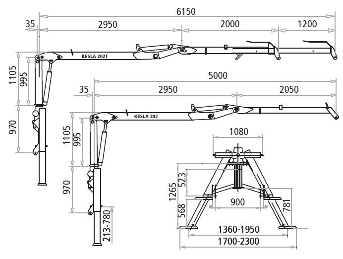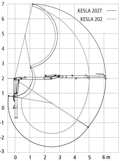 Hydraulická ruka Kesla 202T je kompatibilní s modely přívěsů 104. Lze jej namontovat na stabilizátory A-rámu (s montážní deskou), na skříň zadní nápravy traktoru nebo na 3-bodový závěs. K dispozici jsou mechanické, servohydraulické a elektrické regulační ventily.
