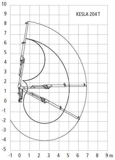Hydraulická ruka Kesla 204T je kompatibilní s modely přívěsů 104. Lze jej namontovat na stabilizátory A-rámu (s montážní deskou), na skříň zadní nápravy traktoru nebo na 3-bodový závěs. K dispozici jsou mechanické, servohydraulické a elektrické regulační ventily.
