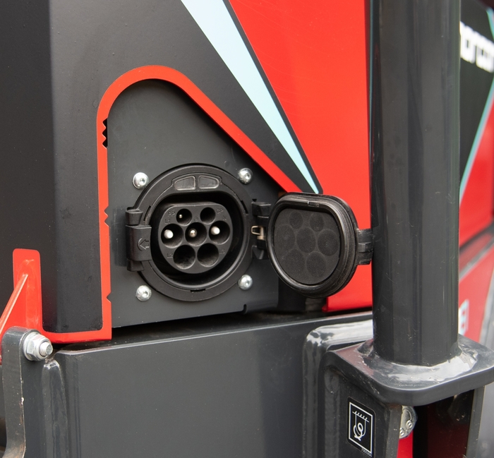 Lithiová baterie miniloaderu se jednoduše nabije pomocí standardního konektoru typu 2 doma, na pracovišti nebo na nabíjecích stanicích.