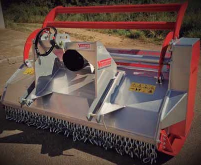 Vybavení: Kompaktní design sestaven z robusní pevnostní oceli s určením pro nejnáročnější práce. Dostatečná ochrana pro zajištění bezpečnosti obsluhy. Snadná údržba. Volnoběh součástí převodovky. Ozubené řemeny SPBX. Hydraulické zadní dveře. Velmi pevný hřídel držáku kladiva z oceli odolného proti opotřebení s kyvnými/oscilačními kladivy 360 °. Smyky pro nastavení hloubky vyrobené z oceli odolné proti opotřebení. Kategorie třetího bodu II.