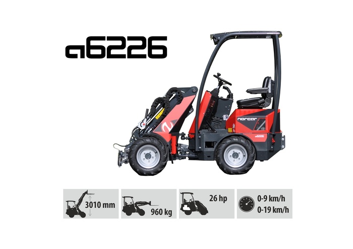 Norcar a6226 má stejnou kompaktní konstrukci jako a6026, ale s vyššími specifikacemi jako standardem. Zařízení vybavené dvěmy pracovními hydraulickými čerpadly, která jsou připravena pro přídavné zařízení vyžadující vysoký průtok oleje. Kromě toho lze současně používat několik funkcí, aniž by se ovlivnily, což činí práci efektivnější.
