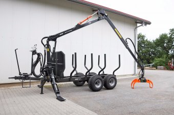 Vyvážecí vlek estonské výroby o nosnosti osm tun s rámovou konstrukcí 2x(200x100x6), boogie nápravou, hydraulicky natáčenou dvěma písty, prodloužení ložné plochy, vzduchové brzdy na všechna kola a možností pohybu klanic. Vhodný pro přibližování sortimentů a klestu z lesních porostů.